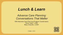- Lunch and Learn Series: Advance Care Planning 10-01-25
